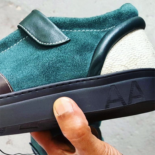 Un prototype de chaussures citadines éco-centrique. Ce modèle est basé sur la substitution des composants synthétiques par leurs équivalents naturels.